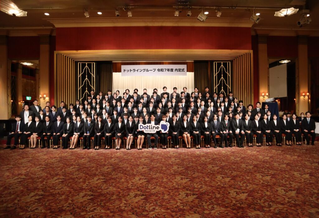 株式会社ドットライン(以下:当社)は、2025年10月2日に、2026年度ドットライン内定式を執り行いました。今年度は当社史上最多である150名の新卒社員入社を予定しており、ホテル ザ・マンハッタン(海浜幕張)にて開催いたしました。